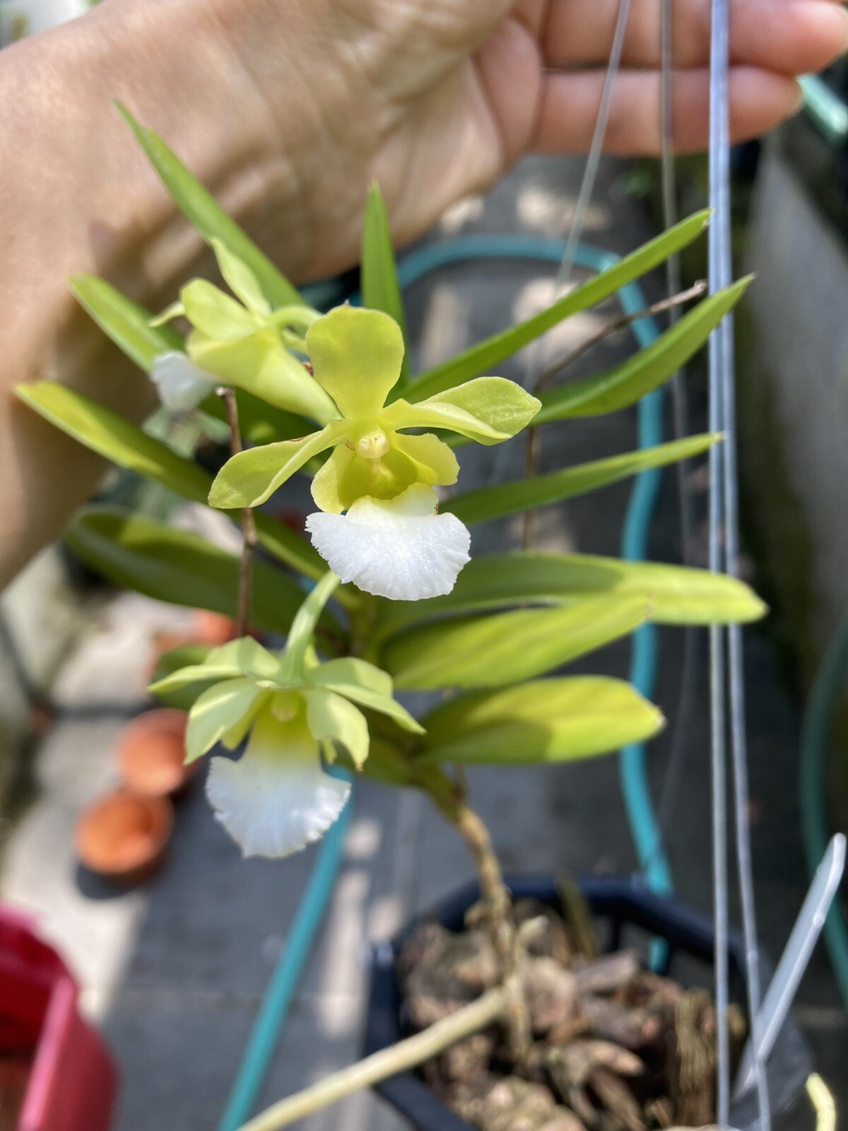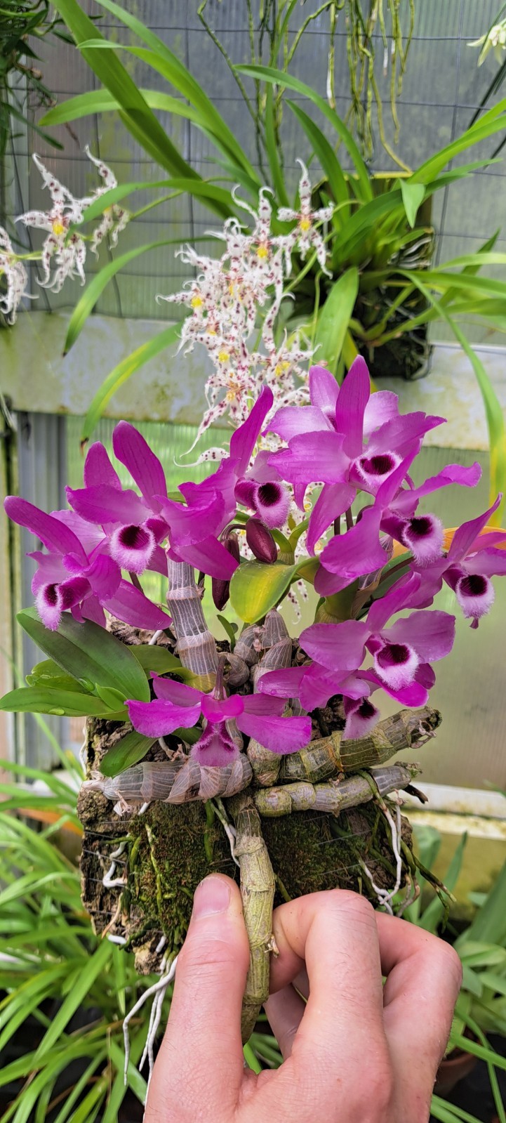 Plants grown without media (for example Vanda in their baskets, or small Dendrobium grown on tree fern panels) will require watering daily, sometimes twice daily in hot weather.