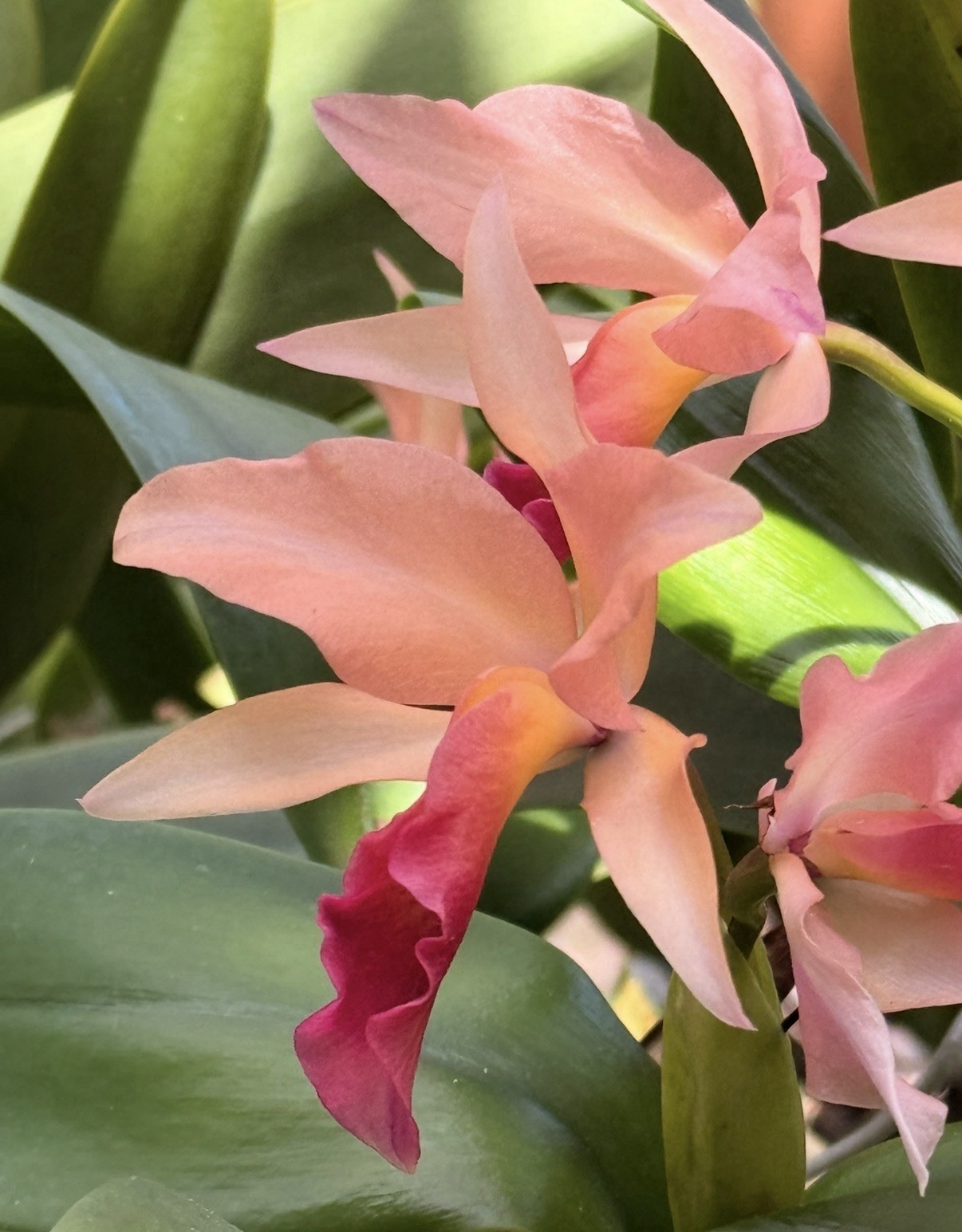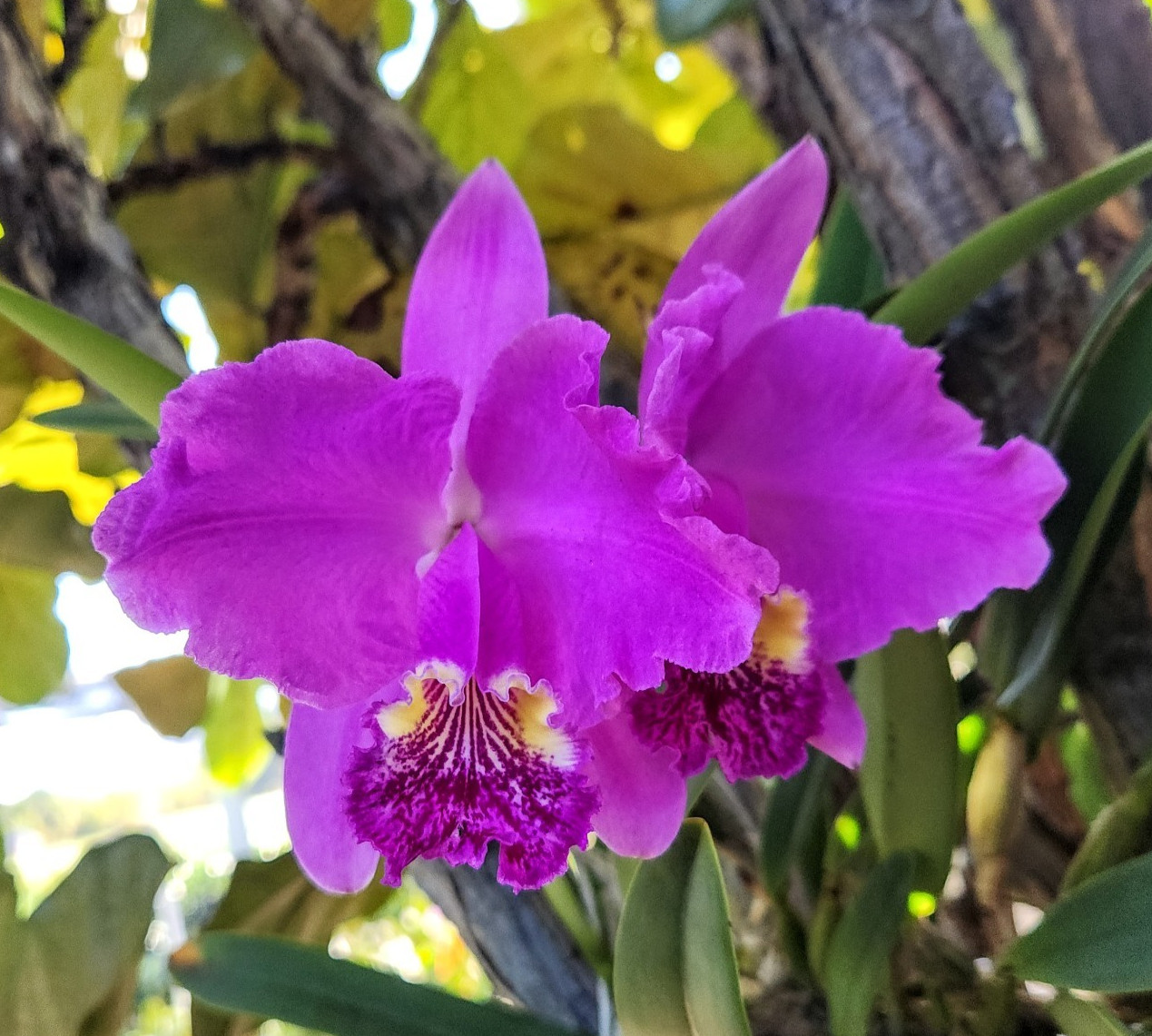 High light level orchid species, Vanda, Cattleya and Dendrobium, enjoy more sun still, but again, not the strongest mid day sun. These species are least prone to leaf burn, but, depending on your local conditions, can tolerate full sun for much of the year. Good species for very bright conditions. Grow lights might be required in lower light environments.