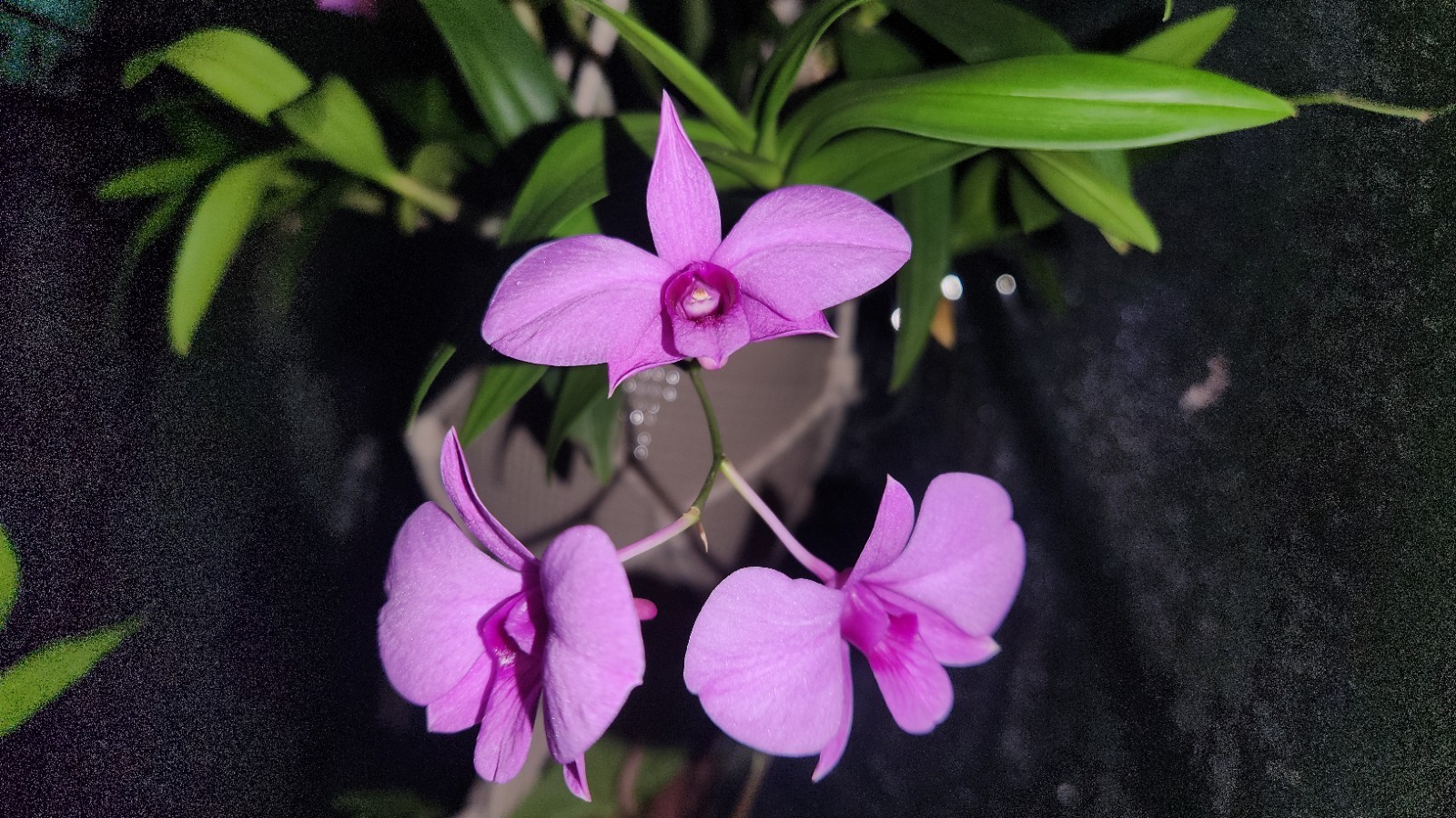Photo Ben HaeringerCorrect potted orchid care, to a large extent, revolves around watering and humidity. Even when not raining, tropical rainforests are humid habitats, and providing your plants with a similarly humid environment is therefore recommended; but if you want to provide the best orchid care, you have to allow enough moisture to keep the plant hydrated, but not so much as to cause any leaf rot or mould. The recommended daytime humidity for orchids is 50-70 percent, not something easy to achieve in many parts of the world. A greenhouse with misting equipment is one solution, and many orchid growers from hot climates may mist their plants during the afternoon, evening or even night-time, but if you are a beginner orchid keeper you should ideally limit watering, spraying and damping down to the morning or mid-day when there is plenty of sunlight and higher temperatures. As the temperature drops during the afternoon and evening, condensation will occur and if you add a lot of extra moisture during this period your orchid will become soaked in condensing water. Droplets produces by excessive condensation will increase the risk of rotting and mould growth.