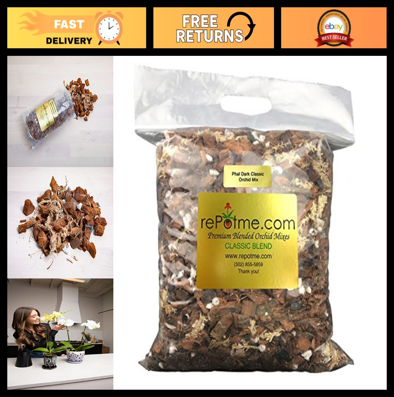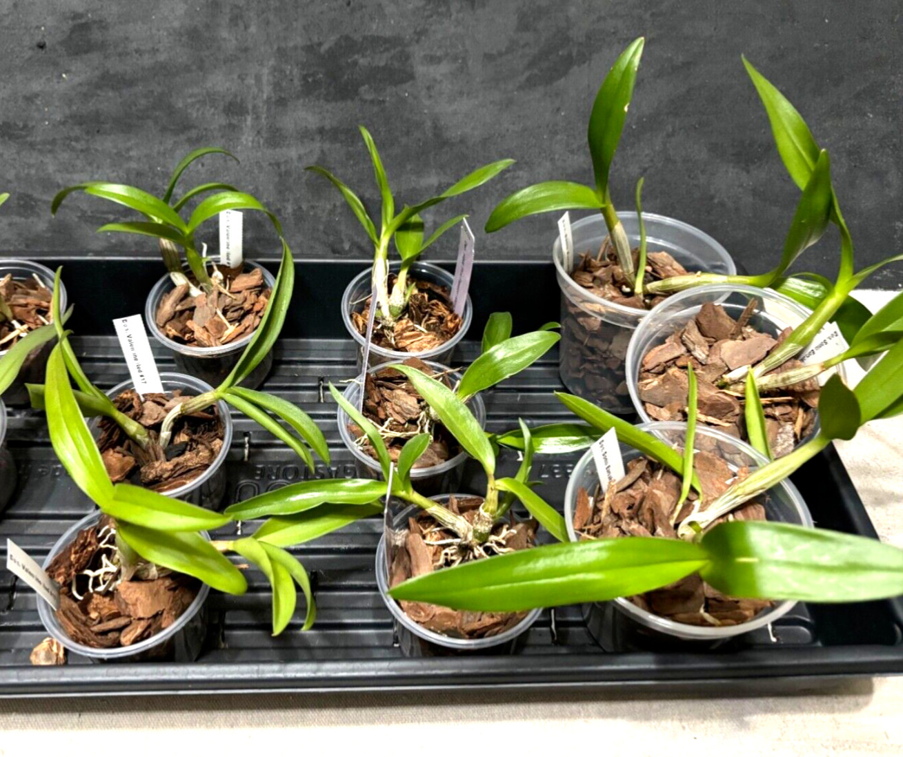 Of course many epiphytic orchids need no media at all, and can instead be mounted on tree fern panels (e.g. Dendrobium) or placed in special slatted baskets (e.g. Vanda). Plants kept in this way will need considerably more frequent watering than potted orchids, typically 1-2 times daily.