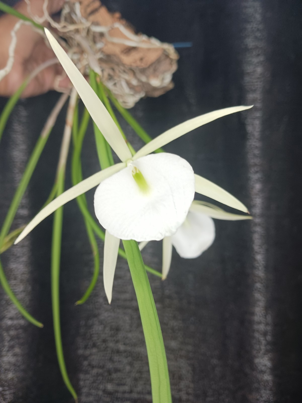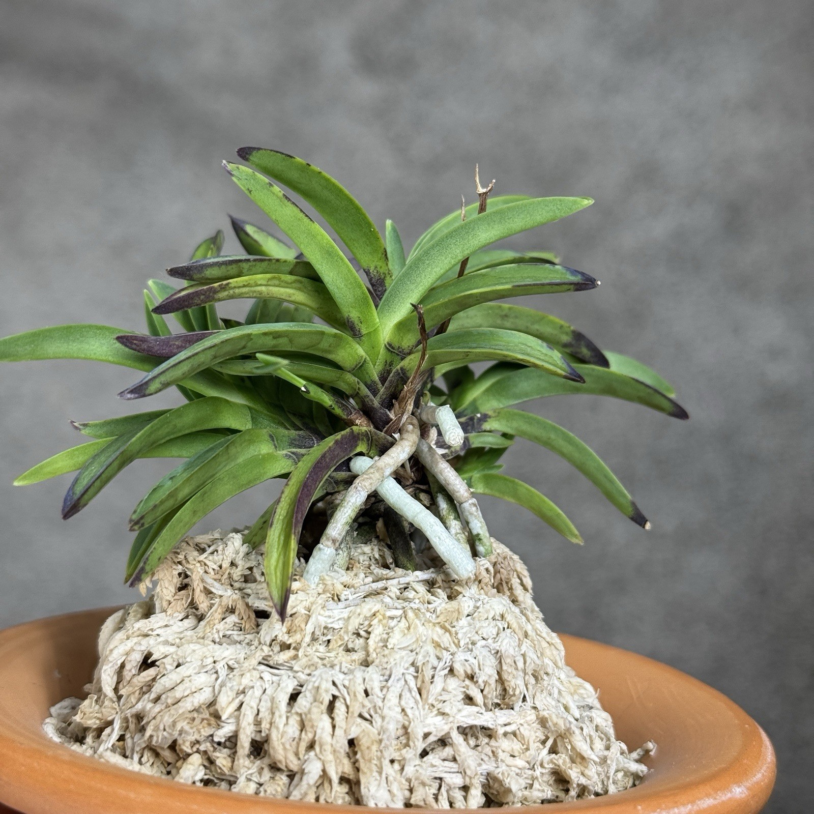 Epiphytes grow on tree trunks, so naturally medium and coarse grade bark chips are the perfect media for roots to cling to; they don't absorb much water, so prevent water-logging, and can be packed loosely enough to give allow some ventilation. Media should never be compact. Clay leca pebbles are very useful, and can be added to the bark, giving great drainage, and storing some water without waterlogging. In some hotter, drier climates, small amounts of sphagnum moss can be added to help maintain humidity.