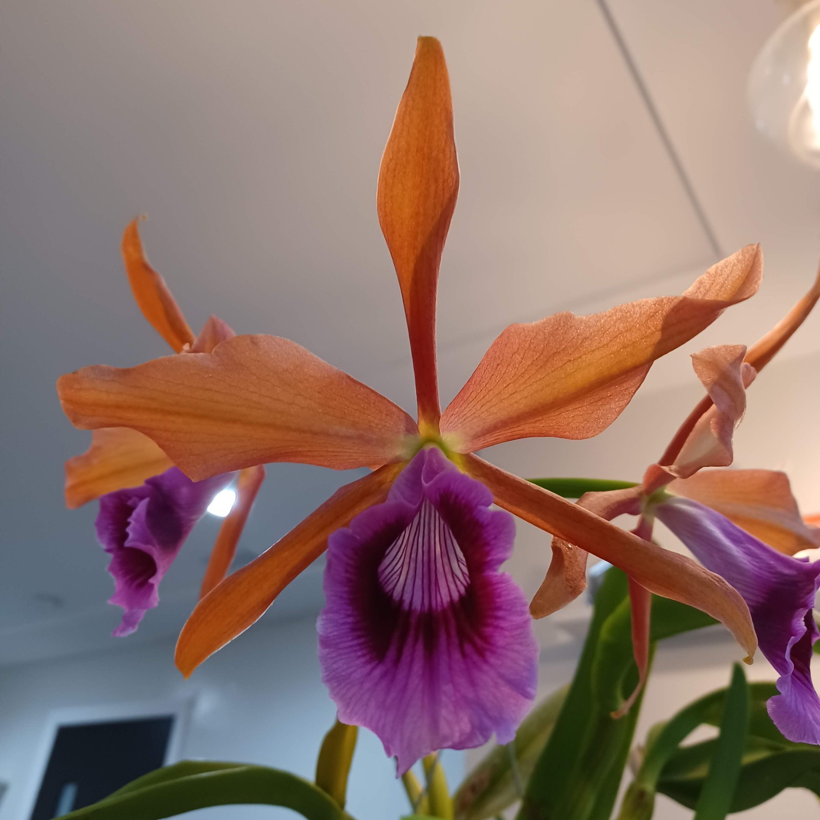 Low-light level orchids are more susceptible to leaf burn. Species such as Paphiopedilum, Phalaenopsis, Miltoniopsis and Oncidium still need bright light, but should not experience direct sunlight except perhaps for short time at sunrise or sunset. In strong light conditions, these plants can be positioned further from windows, or heat can be reduced by placing a fine screen or net curtain between the window and the plant.